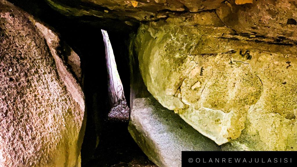 Starting from Ijebu Igbo, the road is covered with limestone ash. Before reaching Ajebandelenugba, be sure you will have to park your bike by the roadside more than twenty times because the Dangote trailers speedily ply the road back and forth every other minute. The dust created by this movement can cause ghastly accidents for passersby and travelers. I was told by the locales that a Dangote truck kills people every other week on that road, and sometimes on a busy week, it is more frequent. To be honest, that was the deadliest road I ever tread. Reaching the village, the Dangote group was mining on one of the large rocks. Obviously, you can’t gain access to the environment because it is well-secured by security personnel. I gained access to another rock with historical connections to the people. At this rock shelter, a stream flowed just about 50cm from its base. Around the edge of the rock shelter were many lithic materials of flakes and cores. To the non-anthropologists, lithic tools are stone tools used during the early, middle, and late Stone Age some thousands of years ago.